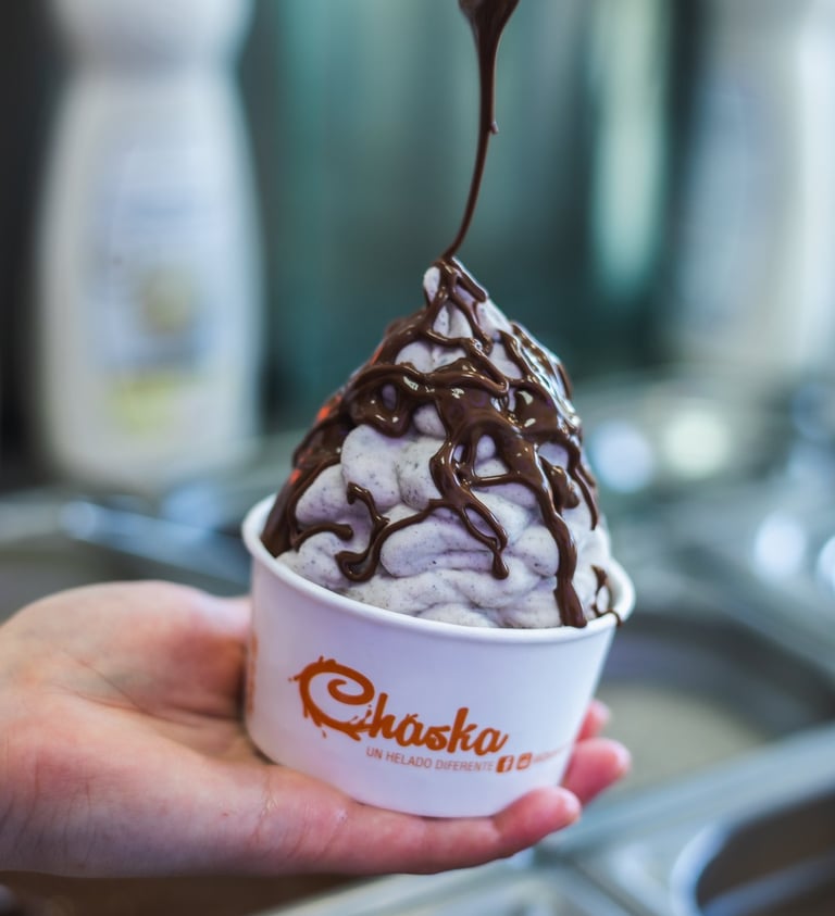 En Chaska, queremos que personalices tu helado a tu gusto con nuestra variedad de toppings deliciosos. Desde crujientes galletas y trozos de chocolate hasta siropes irresistibles, ¡puedes crear combinaciones únicas para disfrutar al máximo!